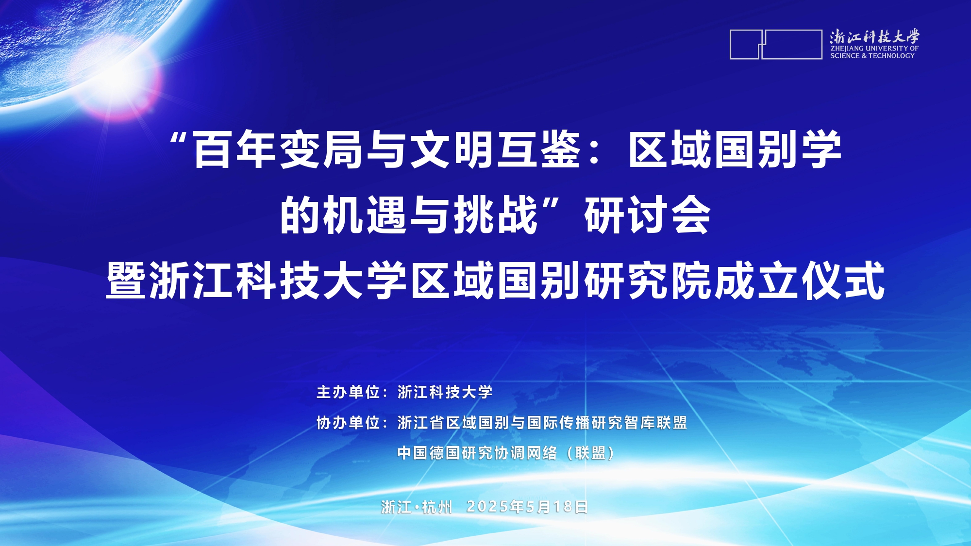 2025年5月18日,“百年变局与文明互鉴:区域国别学的机遇与挑战”研讨会暨浙江科技大学区域国别研究院成立仪式在浙江科技大学顺利举行。会议由浙江科技大学主办,浙江省区域国别与国际传播研究智库联盟、中国德国研究协同网络(联盟)协办,浙江科技大学德语国家研究中心、浙江科技大学中德球探体育比分
