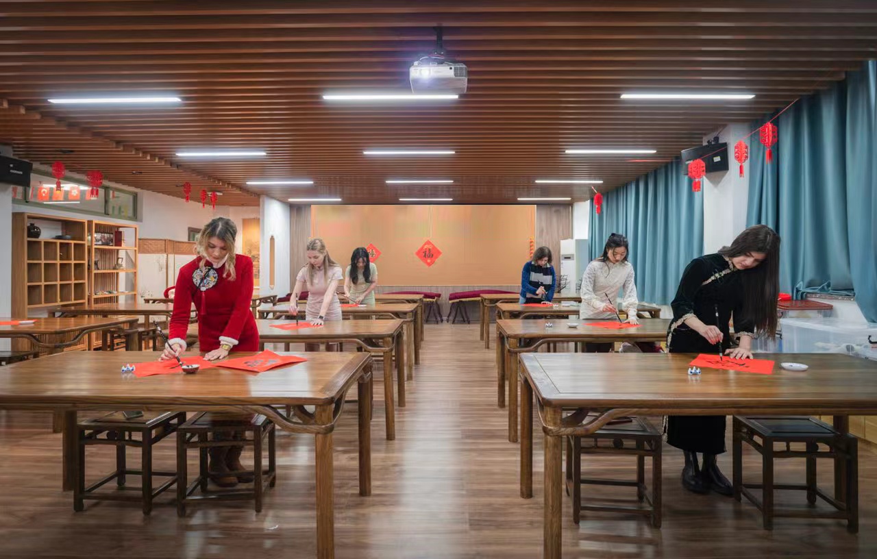 文华书院成立于2020年,是学校实现 “文化+专业”国际学生特色培养的良好尝试。搭建中华文化体验中心,与中国传统文化特色课程、系列讲座及学习实践相结合,让留学生在学习汉语的同时,感受中华文化的魅力,增强对中国传统文化的认同感。国际学生也是文化的使者,以他们为媒介,有助于把中华文化传播到全世界。