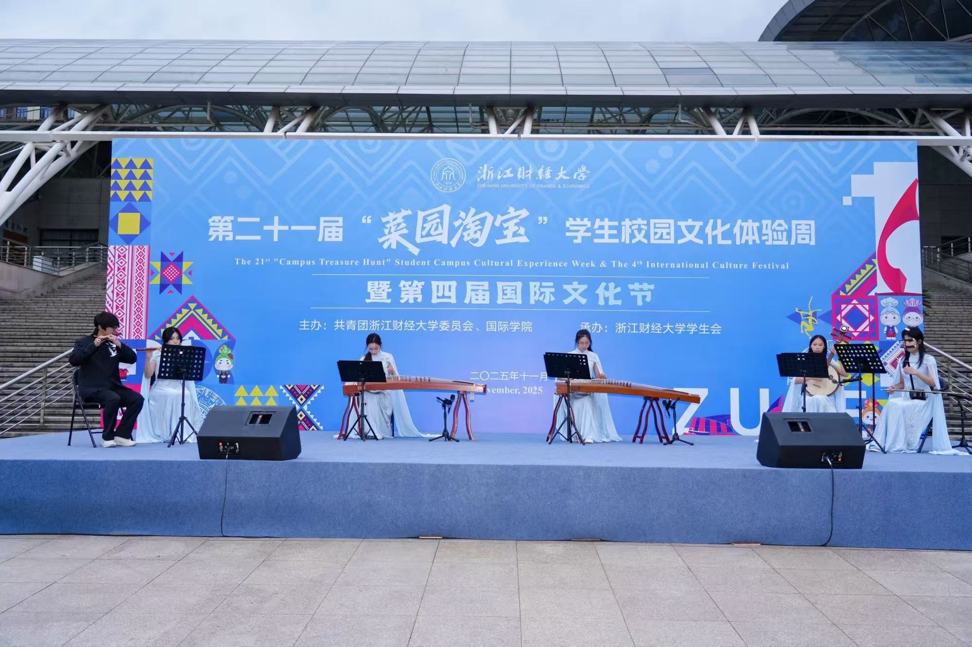 11月11日下午,由校团委、国际学院联合主办的浙江财经大学第二十一届“菜园淘宝”学生校园文化体验周暨第四届国际文化节开幕式文艺汇演,在师生们的热切期待中隆重上演。一场融汇中外、精彩纷呈的文化盛宴在校园内华丽绽放,标志着为期五天的校园文化盛宴正式启幕。