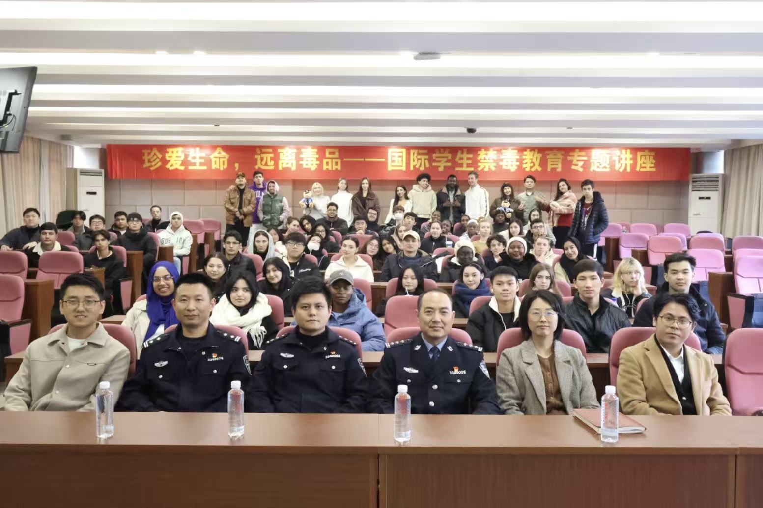 特邀浙江省戒毒康复所“良渚之光”禁毒法治教育讲师团特聘讲师王双非,为全体留学生带来了一场主题为《警惕--笑里藏毒》的禁毒法治教育专题讲座。本次活动旨在帮助留学生们深入了解国内禁毒戒毒工作的严峻形势与严格要求,深刻认识到“笑气”等未列管成瘾性物质的巨大危害。