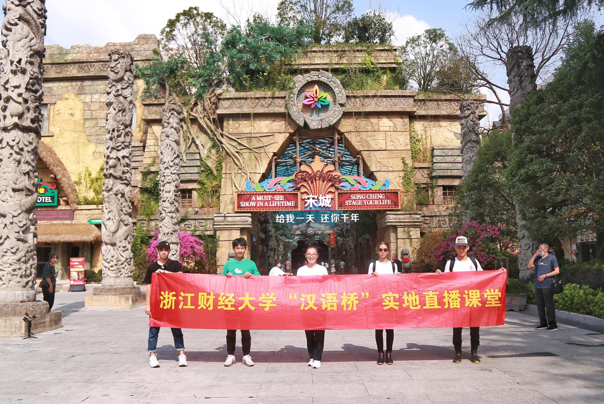 组织球探体育比分数名中外学生赴宋城景区参观,并进行“汉语桥”实地直播课堂录制。