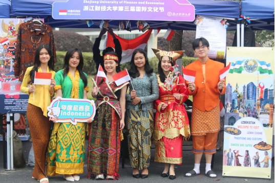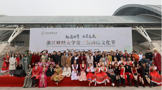 12月3日上午,浙江财经大学第三届国际文化节开幕。本届文化节以“融通世界 共享未来”为主题,共有20多个国家和地区的中外学生和教师参与其中,交流文化、互学互鉴,展示各自服饰、歌舞、美食等人文风情,吸引了众多中外师生前来体验“环游世界之旅”。