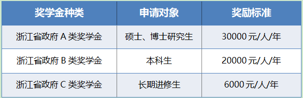 为吸引更多外国留学生来浙江高校学习和从事科学研究,提高留学生层次和留学生教育质量,增进外国留学生对浙江的了解和友谊,浙江省政府于2009年设立“浙江省政府来华留学生奖学金”。
